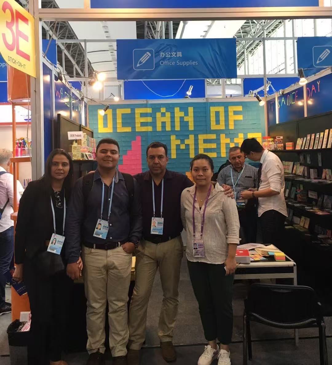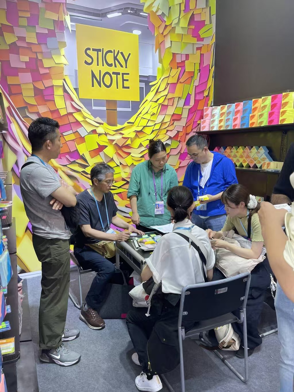 Back then, our team gathered in our orange-and-green themed booth, surrounded by stacks of our earliest sticky note products. The pixel art mural made entirely of sticky notes wasn’t just a decoration — it was a promise to our customers that we would bring color and inspiration to their workspaces. It was here that we met many of our first overseas partners, laying the foundation for the global network we are proud of today.
